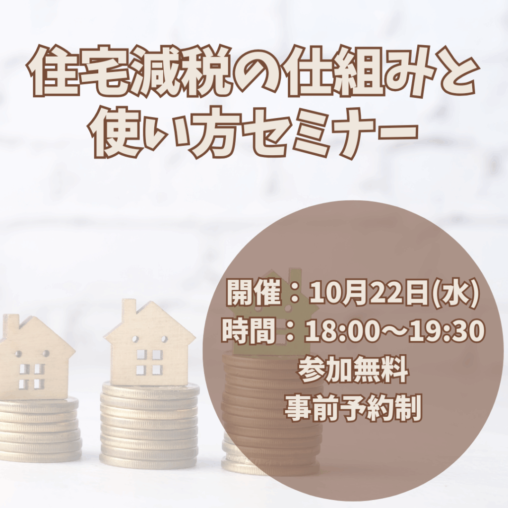 【10/22開催】制度改正のポイントを逃さない!「住宅ローン減税」の仕組みと還付金を最大化する戦略セミナー