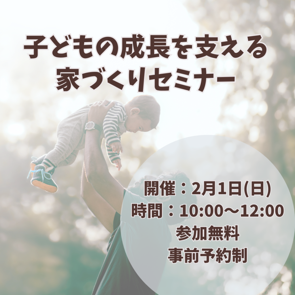 セミナーでは、実際の事例をもとに、子育てしやすい家に共通するポイントを紹介します。